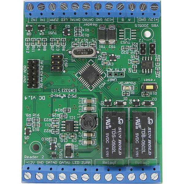 Ajtó vezérlő, 2x Wiegand 26; 2x relé kimenet, 2x relé bemenet, csak panel