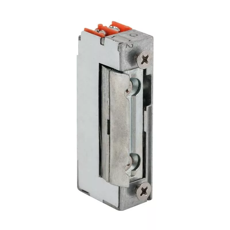 Szimmetrikus, keskeny, alacsony elektromos zárfogadó; 12 VDC; fordított működésű; állítható zárnyelv
