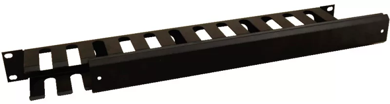 19" kábel rendező panel; 1U; vízszintes; fedéllel; fém