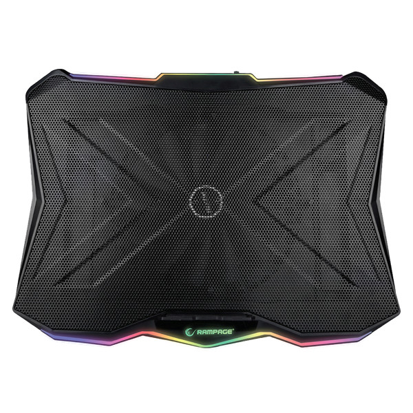 Rampage Notebook Hűtőpad 17,3"-ig - AD-RC8 SHOWY (fém rács; RGB, 1x18cm, USB port, állítható döntési magasság)