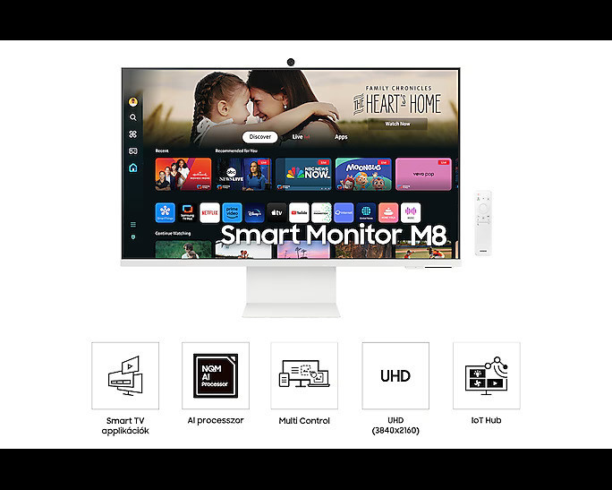 SAMSUNG 32 LS32DM801UUXDU monitor * Méret: 32 * Besorolás: SMART * Széria: M80D * Felbontás: UHD * Felbontás: 3,840 x 2,160 * Kivitel: FLAT * Képarány: 16:9 * Panel típusa: VA * FrissítésHz (Max): 60 * Válaszidő(ms): 4ms(GTG) * Fényerő:(Typ, cd/?): 400 * Kontraszt(Typ): 3000 : 1 * HDR: HDR10+ * Betekintési szög: 178/178 * Flicker Free: Yes * Csatlakozók: HDMIx1, USB 2.0x2, USB-C, Wifi, BT * Távirányító * Hangszóró: 5W x 2 * Fordítható, függőleges képernyő, Dönthető, Állítható magasságú * VESA Mount Support: 100x100 * Tartozék: 1 HDMI, 1 USB-C, 2USB-A