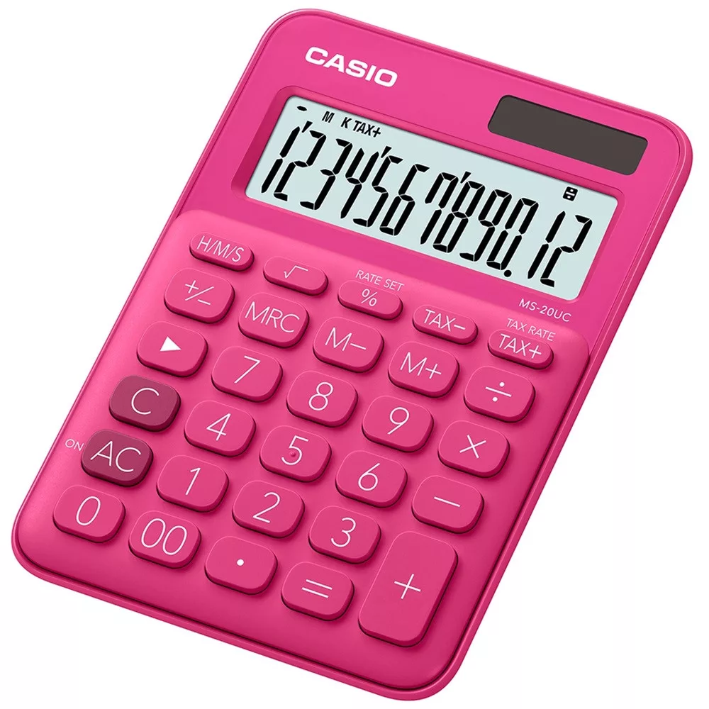 SZÁMOLÓGÉP ASZTALI 12 DIGIT NAGY, DÖNTÖTT KIJELZŐ CASIO MS 20 UC MAGENTA