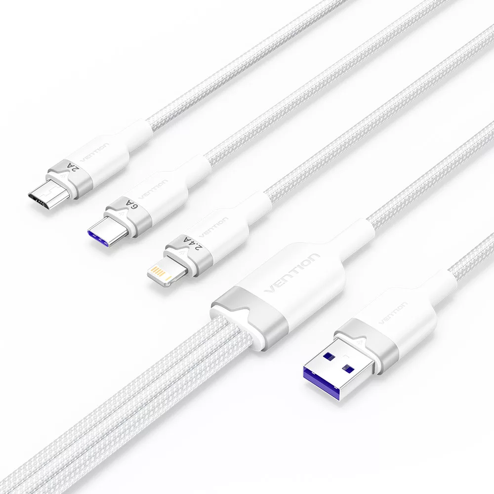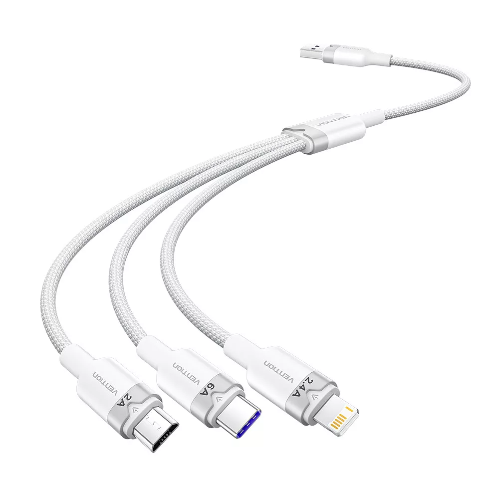 Vention USB-A 2.0/M -> USB-C/Lightning/Micro USB-B, 1,5m,(fehér,6A,3in1), kábel